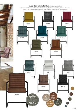 14 unterschiedlichen handgenähten Nahtvarianten, 21 Antik-Lederfarben, 6 Kenia-Lederfarben
