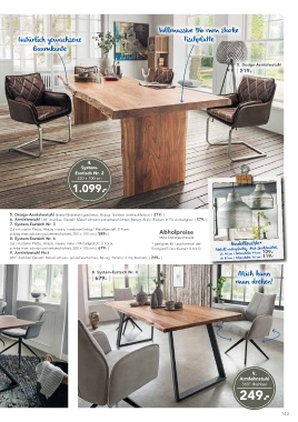 5,6 cm starke Platte, Akazie massiv, grau gesandstrahlt / Metallgestell: 6. Armlehnstuhl 180° drehbar, Gestell: Metall schwarz pulverbeschichtet, Bezug: Aiqili, Rücken in PU dunkelgrau: | 179.- |