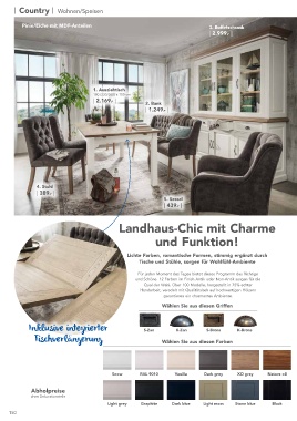 5. Sessel 3. Buffetschrank K-Zan Ral 9010 Antique, XO Gray, 11. Ausziehtisch 180 (220/260) x 100 cm, Höhe 78 cm: | 2.169.- |