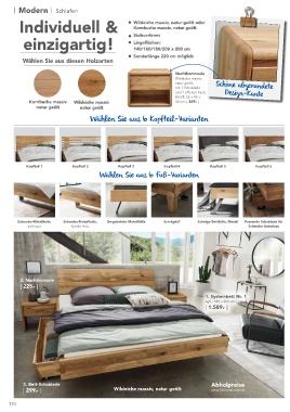 gepolstertem Kopfteil im Leder-Look, Lgfl: 180 x 200 cm: | 1.329.- | Wildeiche massiv, natur geölt