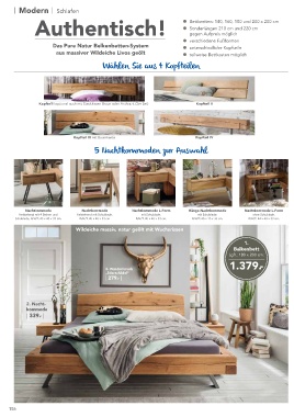 Wildeiche massiv, natur geölt mit Wuchsrissen pulverbeschichteten Stahlfüßen, B/H/T: 45 x 40 x 33 cm: | 339.- | 7. Steckkissen für das Kopfteil, 2-er Set, B/H/T: je 50 x 20 x 18 cm: | 169.- |