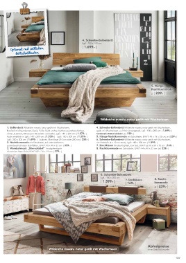 Wildeiche massiv, natur geölt mit Wuchsrissen pulverbeschichteten Stahlfüßen, B/H/T: 45 x 40 x 33 cm: | 339.- | 7. Steckkissen für das Kopfteil, 2-er Set, B/H/T: je 50 x 20 x 18 cm: | 169.- |