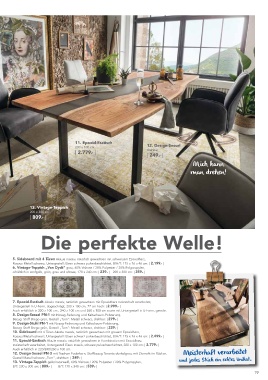| 269.- | 6. Vintage-Teppich | 599.- | 11. Epoxid-Esstisch 12. Design-Sessel