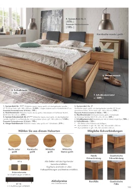 • Standard-Fußhöhe: 43 cm. 1. System-Bett Nr. 1*/** Wildeiche massiv, bianco geölt, mit durchgehender Lamelle, 5. System-Bett Nr. 3*