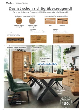Wohn- und Speiszimmer Programm in Wildeiche massiv natur oder bianco geölt. | 149.- |
