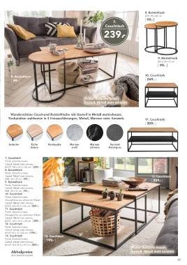 je | 169.- | Variante Tischplatten wahlweise in 3 Holzausführungen, Metall, Marmor oder Keramik. 11. Couchtisch