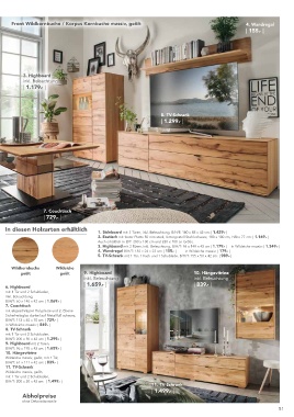 inkl. Beleuchtung | 179.- | 3. Highboard mit 2 Türen, inkl. Beleuchtung, B/H/T: 96 x 140 x 42 cm | 1.179.- | in Wildeiche massiv: | 1.349.- |